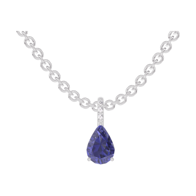 « L'ATELIER » NR. 206648Anhänger Weißgold 375/-(9Kt) - Blauer Saphir Tropfen 0.3 Karat - Fassung Diamant - Kette Ankerkette 4.8