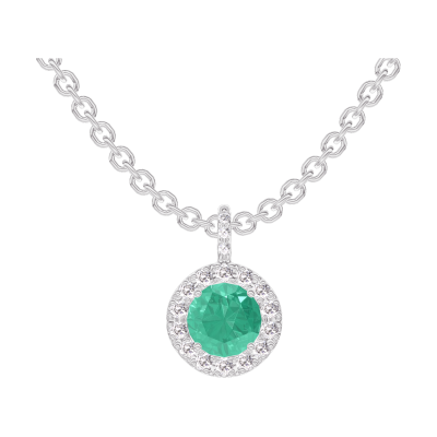 « L'ATELIER » Nº207080Anhänger Weißgold 375/-(9Kt) - Smaragd rund 0.3 Karat - Halo Diamant - Fassung Diamant - Kette Ankerkette 4.3