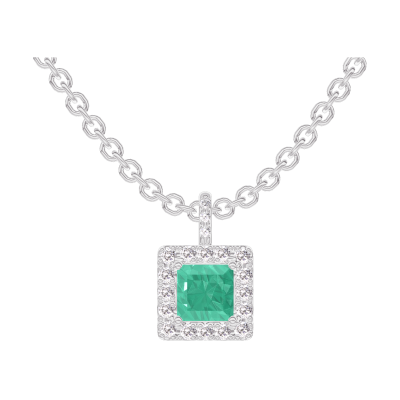 « L'ATELIER » Nº207272Anhänger Weißgold 375/-(9Kt) - Smaragd Prinzess 0.3 Karat - Halo Diamant - Fassung Diamant - Kette Ankerkette