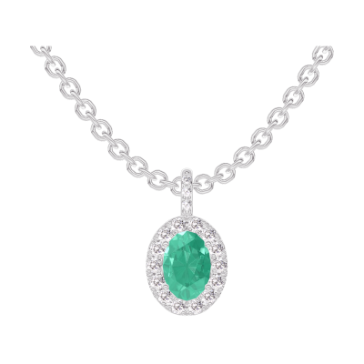 « L'ATELIER » Nº207655Anhänger Weißgold 750/-(18Kt) - Smaragd Oval 0.3 Karat - Halo Diamant - Fassung Diamant - Kette Ankerkette