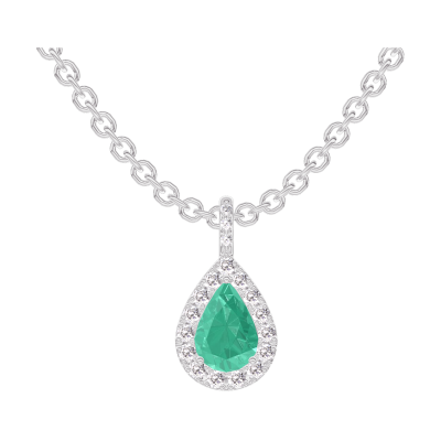 « L'ATELIER » Nº207847Anhänger Weißgold 750/-(18Kt) - Smaragd Tropfen 0.3 Karat - Halo Diamant - Fassung Diamant - Kette Ankerkette