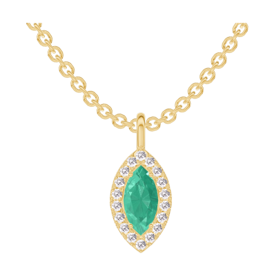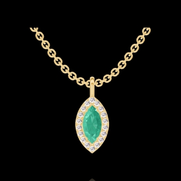« L'ATELIER » Nº208033Anhänger Gelbgold 750/-(18Kt) - Smaragd Marquise 0.3 Karat - Halo Diamant - Kette Ankerkette