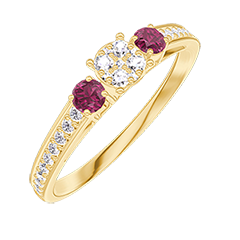 Ring Gelbgold 375/-(9Kt) - Pavé aus natürlichen Diamanten rund entsprechend 0.3 - Seitliche Steine Rubin - Fassung Diamant