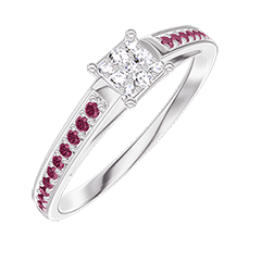 Ring Weißgold 375/-(9Kt) - Pavé aus natürlichen Diamanten Prinzess entsprechend 0.3 - Fassung Rubin