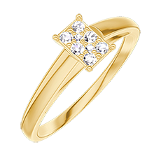 Ring Gelbgold 750/-(18Kt) - Pavé aus natürlichen Diamanten Rechteckig entsprechend 0.3