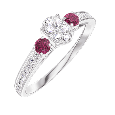 « L'ATELIER » Nº209348Ring Weißgold 375/-(9Kt) - Pavé aus natürlichen Diamanten Oval entsprechend 0.3 - Seitliche Steine Rubin - Fassung Diamant 5