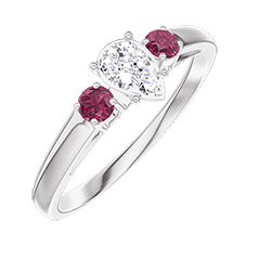 Ring Weißgold 750/-(18Kt) - Pavé aus natürlichen Diamanten Tropfen entsprechend 0.3 - Seitliche Steine Rubin