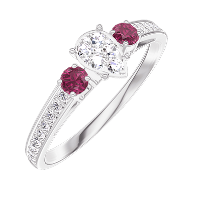 « L'ATELIER » Nº209447Ring Weißgold 750/-(18Kt) - Pavé aus natürlichen Diamanten Tropfen entsprechend 0.3 - Seitliche Steine Rubin - Fassung Diamant
