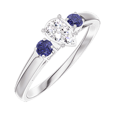 Ring Weißgold 375/-(9Kt) - Pavé aus natürlichen Diamanten Tropfen entsprechend 0.3 - Seitliche Steine Blauer Saphir