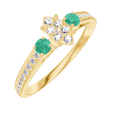 « L'ATELIER » NR. 209585Ring Gelbgold 750/-(18Kt) - Pavé aus natürlichen Diamanten Marquise entsprechend 0.3 - Seitliche Steine Smaragd - Fassung Diamant
