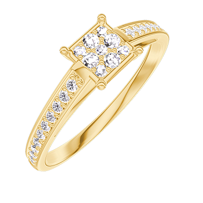« L'ATELIER » Nº209705Ring Gelbgold 750/-(18Kt) - Pavé aus natürlichen Diamanten Prinzess entsprechend 0.5 - Fassung Diamant