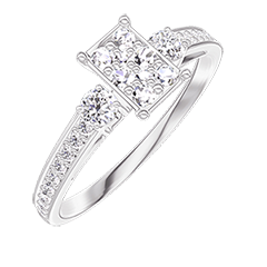 Ring Weißgold 750/-(18Kt) - Pavé aus natürlichen Diamanten Rechteckig entsprechend 0.5 - Seitliche Steine Diamant - Fassung Diamant