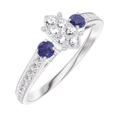 « L'ATELIER » Nº210168Ring Weißgold 375/-(9Kt) - Pavé aus natürlichen Diamanten Marquise entsprechend 0.5 - Seitliche Steine Blauer Saphir - Fassung Diamant