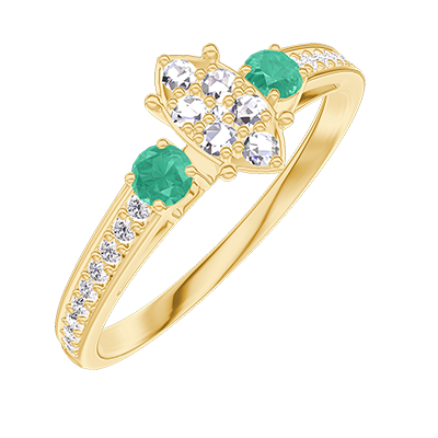 « L'ATELIER » NR. 210186Ring Gelbgold 375/-(9Kt) - Pavé aus natürlichen Diamanten Marquise entsprechend 0.5 - Seitliche Steine Smaragd - Fassung Diamant