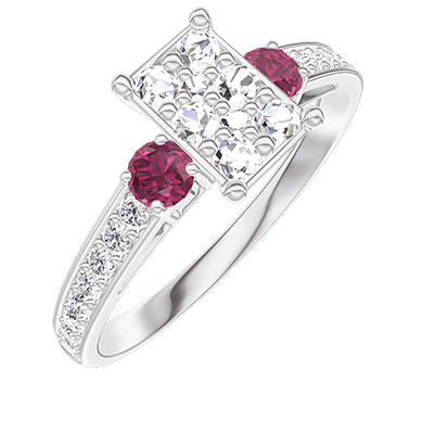 « L'ATELIER » Nº210447Ring Weißgold 750/-(18Kt) - Pavé aus natürlichen Diamanten Rechteckig entsprechend 0.7 - Seitliche Steine Rubin - Fassung Diamant