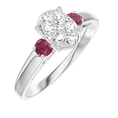« L'ATELIER » Nº210543Ring Weißgold 750/-(18Kt) - Pavé aus natürlichen Diamanten Oval entsprechend 0.7 - Seitliche Steine Rubin