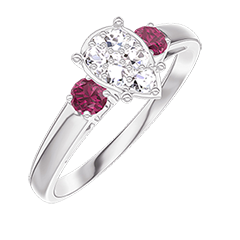 Ring Weißgold 375/-(9Kt) - Pavé aus natürlichen Diamanten Tropfen entsprechend 0.7 - Seitliche Steine Rubin