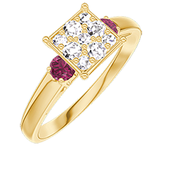 Ring Gelbgold 750/-(18Kt) - Pavé aus natürlichen Diamanten Prinzess entsprechend 1 - Seitliche Steine Rubin