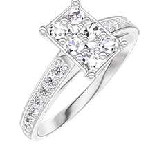 Ring Weißgold 375/-(9Kt) - Pavé aus natürlichen Diamanten Rechteckig entsprechend 1 - Fassung Diamant