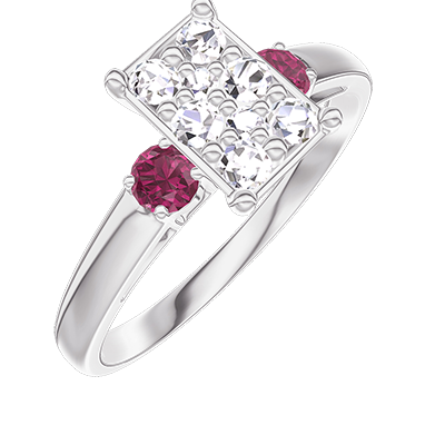« L'ATELIER » Nº211044Ring Weißgold 375/-(9Kt) - Pavé aus natürlichen Diamanten Rechteckig entsprechend 1 - Seitliche Steine Rubin 4.6
