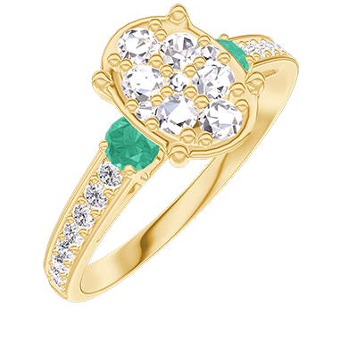 « L'ATELIER » Nº211186Ring Gelbgold 375/-(9Kt) - Pavé aus natürlichen Diamanten Oval entsprechend 1 - Seitliche Steine Smaragd - Fassung Diamant 4.8