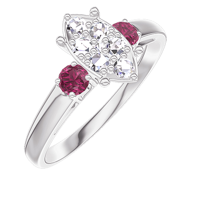 « L'ATELIER » Nº211343Ring Weißgold 750/-(18Kt) - Pavé aus natürlichen Diamanten Marquise entsprechend 1 - Seitliche Steine Rubin