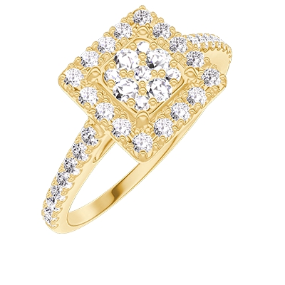 « L'ATELIER » NR. 211454Ring Gelbgold 375/-(9Kt) - Pavé aus natürlichen Diamanten Prinzess entsprechend 0.5 - Halo Diamant - Fassung Diamant 4.6