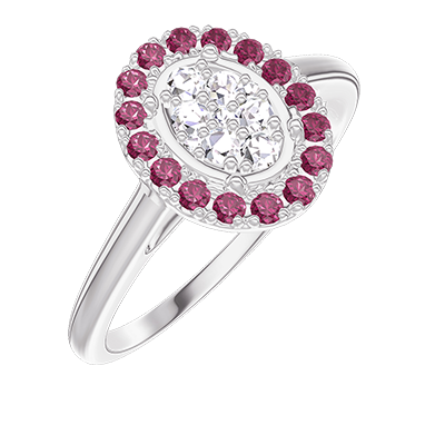 « L'ATELIER » Nº211564Ring Weißgold 375/-(9Kt) - Pavé aus natürlichen Diamanten Oval entsprechend 0.5 - Halo Rubin 4.8