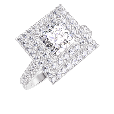 « L'ATELIER » NR. 406671Ring Weißgold 750/-(18Kt) - Labordiamant Prinzess 0.5 Karat - Halo Labordiamant - Fassung Labordiamant
