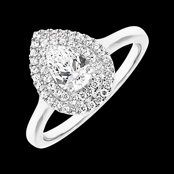« L'ATELIER » NR. 407109Ring Weißgold 375/-(9Kt) - Labordiamant Tropfen 0.5 Karat - Halo Labordiamant