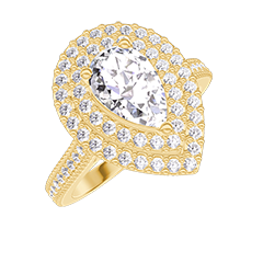 Ring Gelbgold 375/-(9Kt) - Labordiamant Tropfen 0.5 Karat - Halo Labordiamant - Fassung Labordiamant