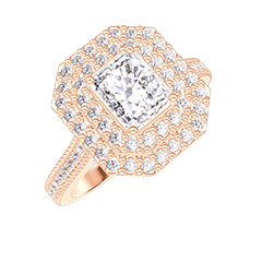 Ring Roségold 375/-(9Kt) - Labordiamant Rechteckig 0.5 Karat - Halo Labordiamant - Fassung Labordiamant