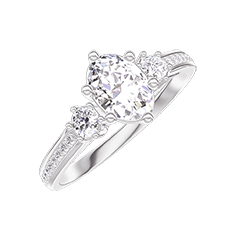 Ring Weißgold 750/-(18Kt) - Labordiamant Oval 0.5 Karat - Seitliche Steine Labordiamant - Fassung Labordiamant