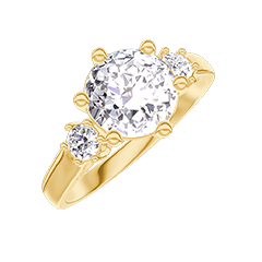 Ring Gelbgold 375/-(9Kt) - Labordiamant rund 1 Karat - Seitliche Steine Labordiamant