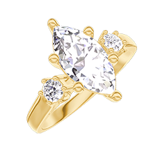 Ring Gelbgold 375/-(9Kt) - Labordiamant Marquise 1 Karat - Seitliche Steine Labordiamant