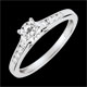 Ein unentbehrlicher Solitaire aus Weißgold, unterstrichen mit einer Reihe von Brillanten, in einer klaren, zarten und zeitlosen Fassung. 9 Diamanten : 0.56 Karat - Weißgold (375/-): 1.7 g. Weitere Abmessungen