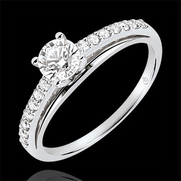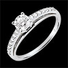 Ein Diamant Solitaire begleitet von Diamanten mit Brillantschliff, der für höchsten Glanz auf einer Weißgold-Fassung sorgt.