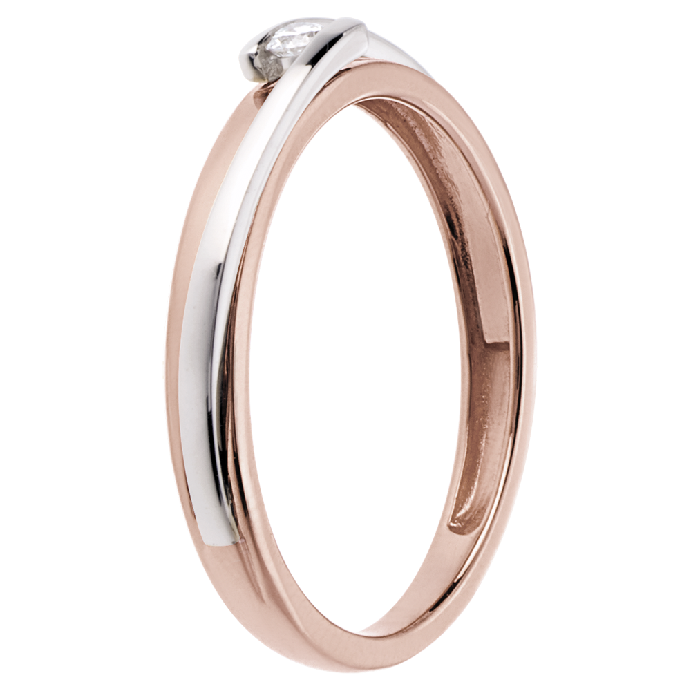 Solitärring Kostbarer Kokon - Anziehungskraft - Weiß-und Roségold - Diamant 0.04 Karat - 18 Karat