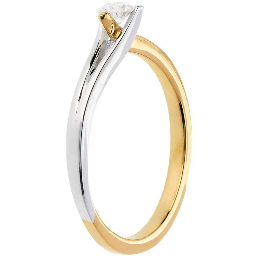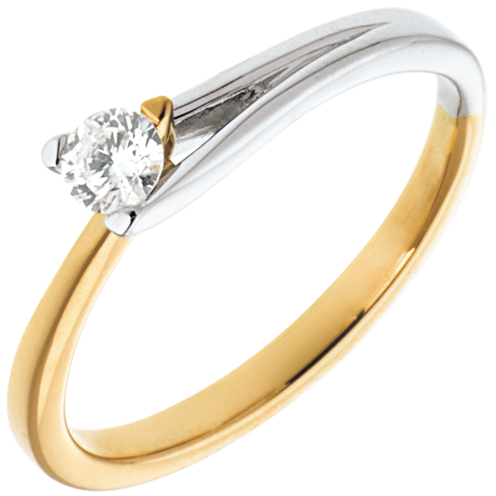 Ein lieblicher Diamantring, der die Vereinigung von Weiss- und Gelbgold symbolisiert.