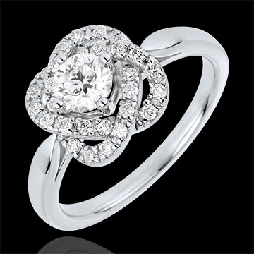 Ein Solitär Diamant inmitten einer Blütenpracht aus Weißgold und Diamanten.