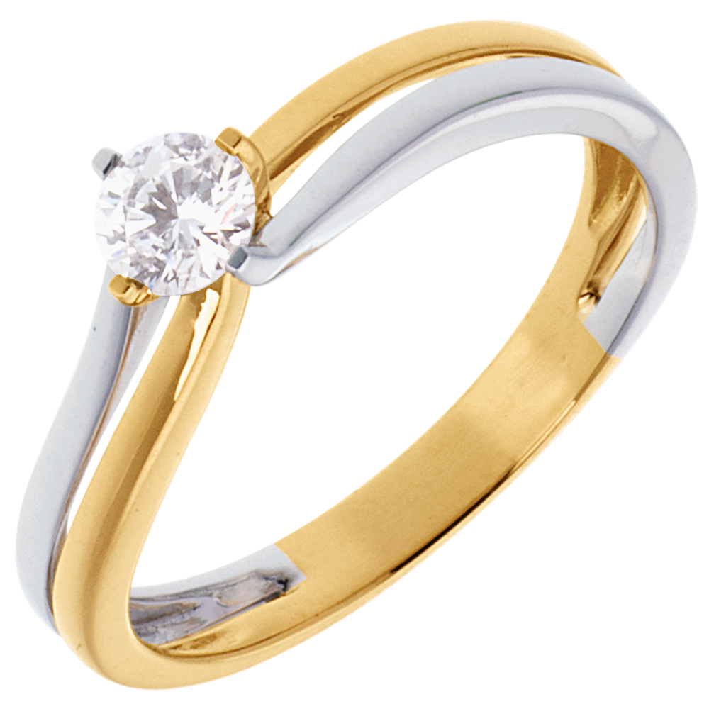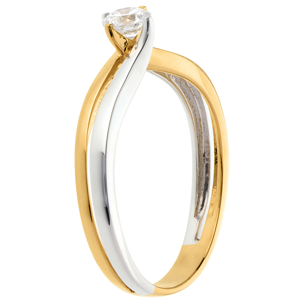 Weiss- und Gelbgold fliessen Seite an Seite und ihre Wege verschmelzen in einem funkelnden Diamanten.