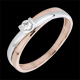 Ein Solitärdiamant thront auf einer modernen Fassung in Form eines Doppelringes in Rosé- und Weißgold. 1 Diamant : 0.07 Karat - Weiß-und Rotgold (750/-): 2.4 g. Weitere Abmessungen