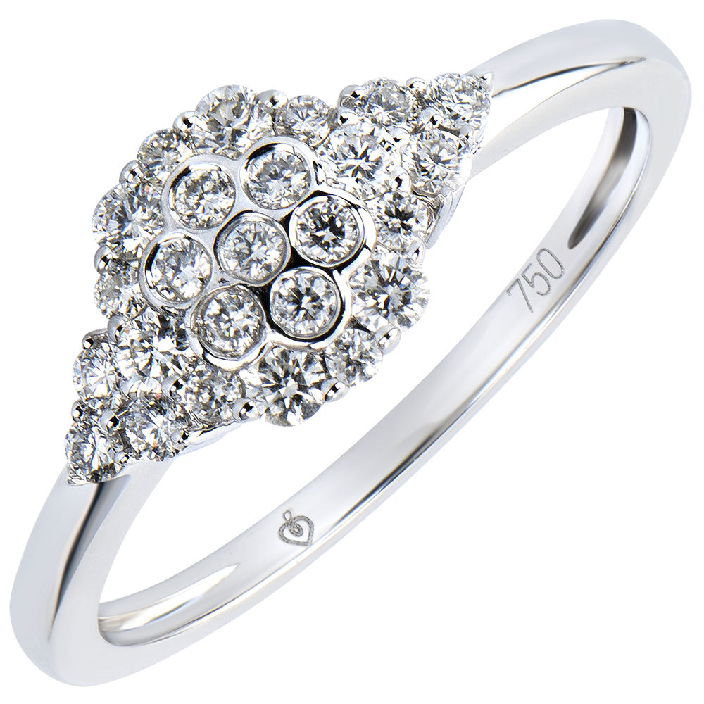 Eine Diamantpave in Form einer Bienenwabe, die diesem Ring einen weichen Glanz verleiht.