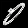 Ein Solitär, gehalten von 4 Krappen, wird auf ein wertvolles Seil aus Gold gesetzt. Ein zeitloser und origineller Verlobungsring.