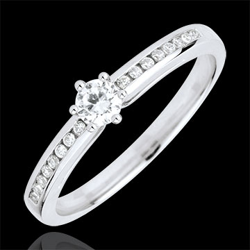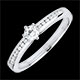 Ein Solitär in 6er Krappenfassung ruht auf einer Fassung besetzt mit Diamanten. 17 Diamanten : 0.25 Karat - Weißgold (750/-): 2.7 g. Weitere Abmessungen