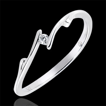 Solitär Ring Kostbarer Kokon - Zweig - 9 Karat Weißgold und Diamant