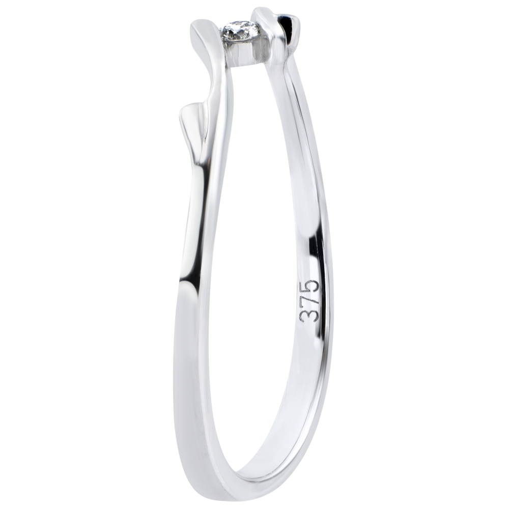 Ein Ringgestell mit natürlichen und pflanzlichen Rundungen, wie ein weicher Zweig mit einer Diamantknospe im Zeichen zarter und sensibler Weiblichkeit. 1 Diamant : 0.02 Karat - Weißgold (375/-): 1 g. Weitere Abmessungen