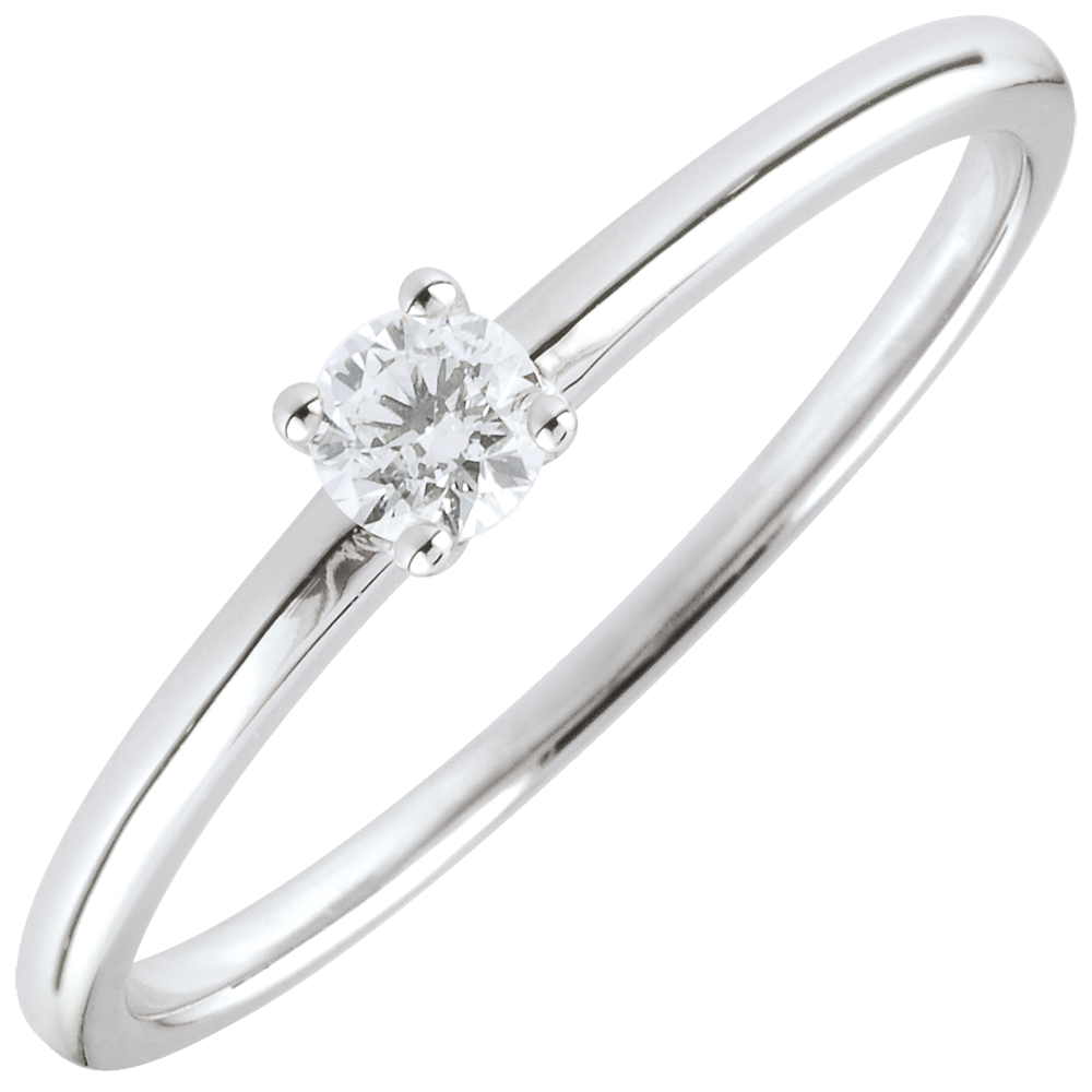 Ein Solitär wird von einer 4er Krappenfassung auf einer edlen und modernen Fassung gehalten. 1 Diamant : 0.1 Karat - Weißgold (375/-): 1.1 g. Weitere Abmessungen