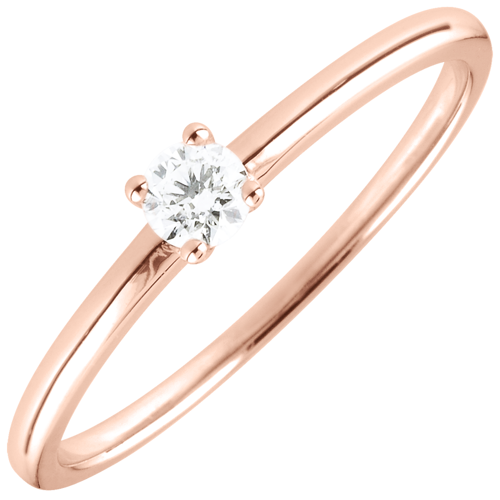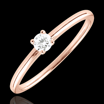 Ein Solitär wird von einer 4er Krappenfassung auf einer edlen und modernen Fassung gehalten. 1 Diamant : 0.1 Karat - Rotgold (375/-): 1.1 g. Weitere Abmessungen