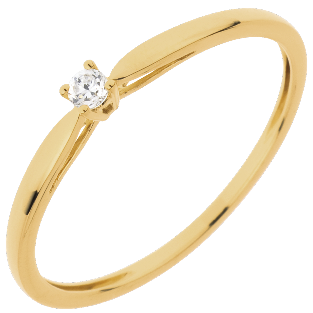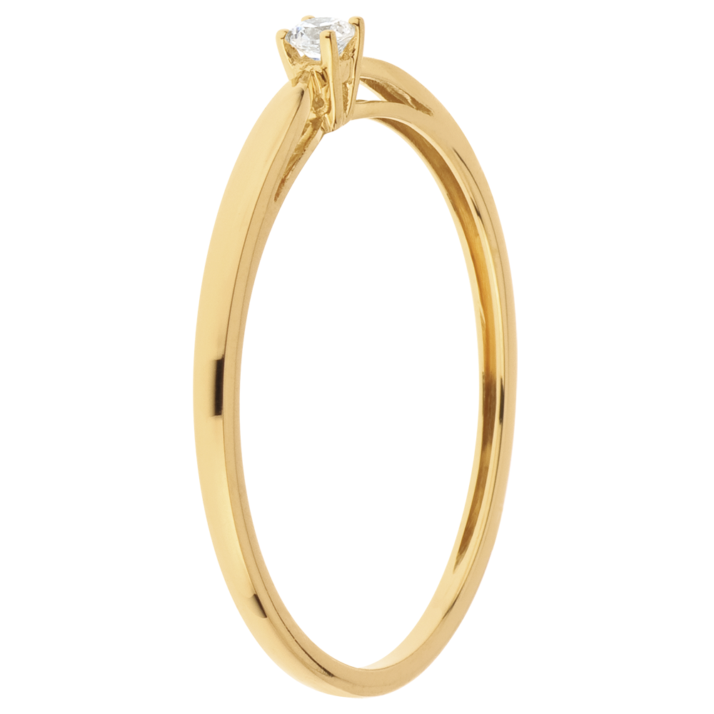 Ein Ring zart wie Schilfgras, gekrönt von einem Diamant in einer 4er Krappenfassung. 1 Diamant : 0.04 Karat - Gelbgold (750/-): 1.1 g. Weitere Abmessungen